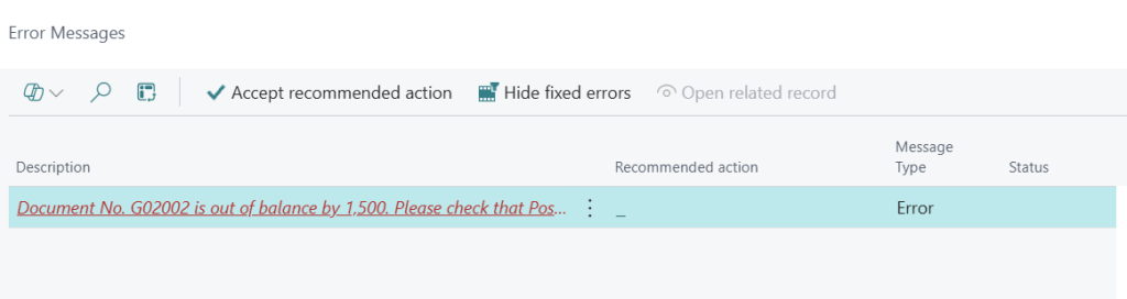 • If Force Doc. Balance = TRUE, each Document No. + Posting Date combo must also net to zero