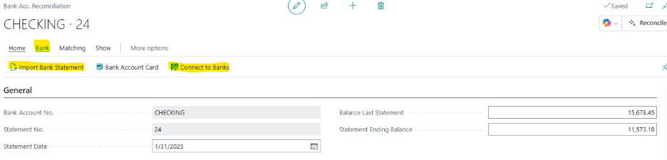 - Open the Bank Account Reconciliation page.
