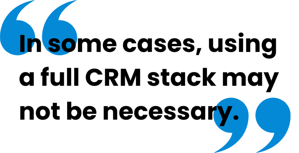 If I had to go in and create an opportunity in a CRM, complete the entire sales process designed in CRM, and then push that back into the ERP for purchasing, delivery, and execution, I would be working a lot more. In some cases, using a full CRM stack may not be necessary.
