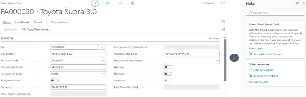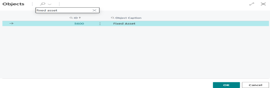 For this example, enter fixed asset in the search box and select OK