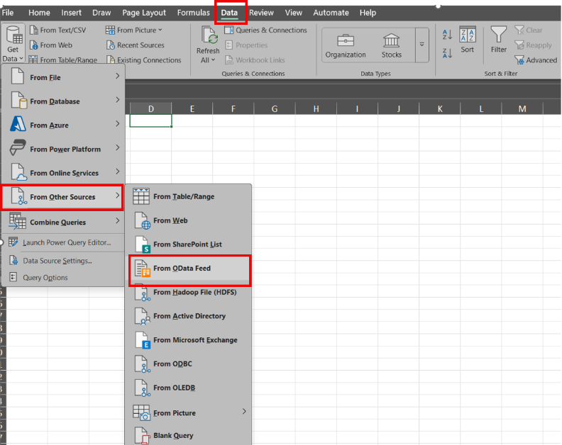 Step 2: Open Excel and Connect to OData