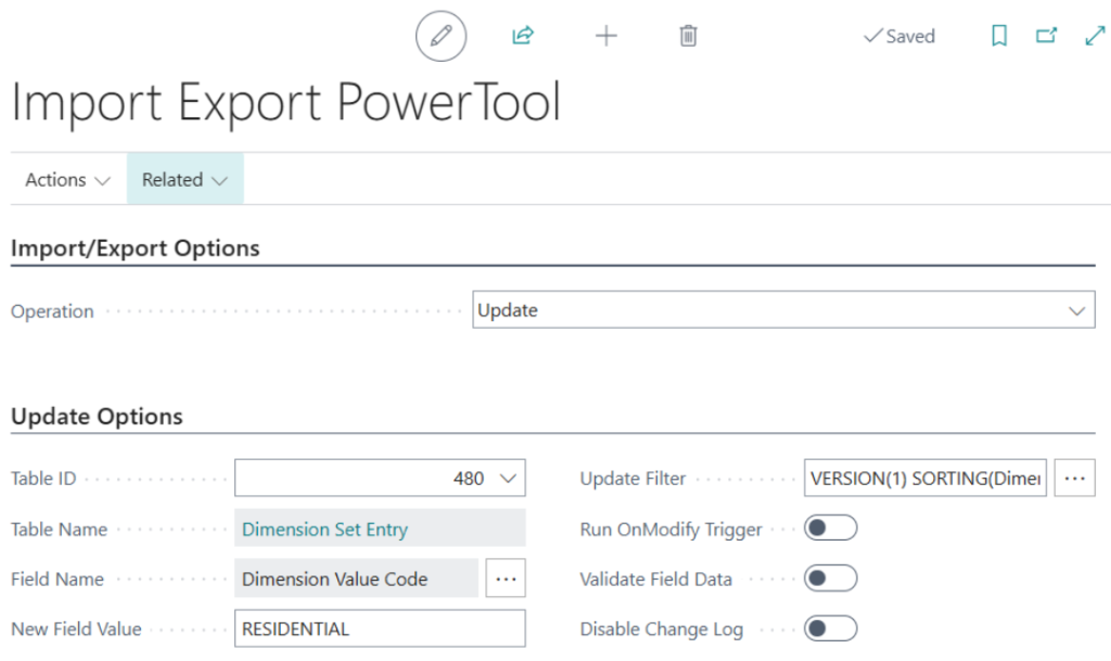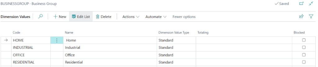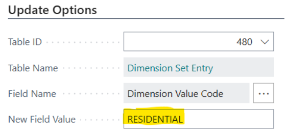 In this example, the client wants to change the dimension for the  BUSINESGROUP from HOME to a new dimension code of RESIDENTIAL throughout the system.