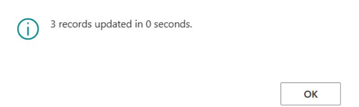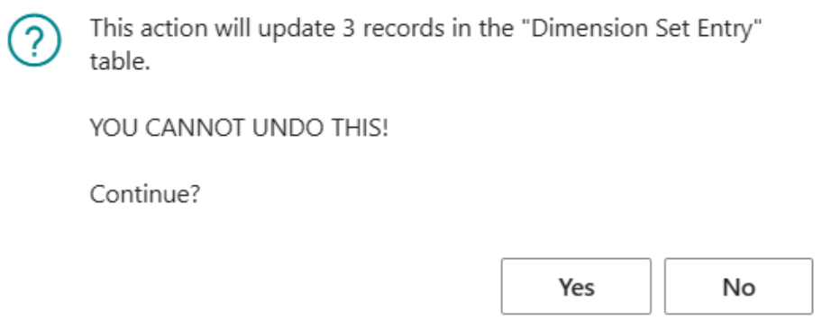 A message box will appear with information on the number of records to be updated and to warn that the action cannot be undone. Click on Yes to Continue, and then click on OK