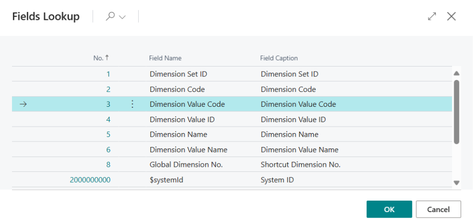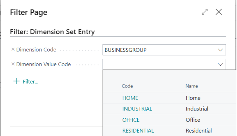 Then, select the Dimension Value Code by using the dropdown button and clicking on the code.
